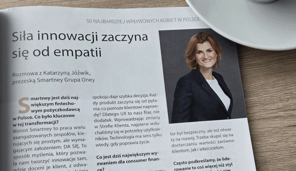 Z dumą informujemy, że Katarzyna Jóźwik, CEO Smartney Grupa Oney, została wyróżniona w prestiżowym zestawieniu „50 najbardziej wpływowych kobiet w Polsce”, przygotowanym przez magazyn Home & Market. Opublikowany 5 lutego 2026 r. ranking przedstawia liderki biznesu, technologii, kultury i organizacji społecznych, które dzięki odwadze, kompetencjom i innowacyjności realnie kształtują współczesną Polskę. To ponowna obecność Katarzyny Jóźwik w zestawieniu magazynu, pierwsza miała miejsce w 2023 roku.