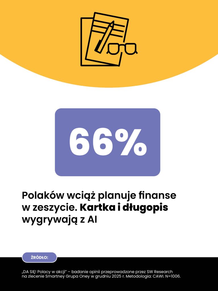 Nowy rok tradycyjnie sprzyja finansowym podsumowaniom i planom. To czas, w którym wiele osób deklaruje większą dyscyplinę budżetową, oszczędzanie, spłatę zobowiązań czy bardziej świadome decyzje zakupowe. Nasz badanie, zrealizowane we współpracy z SW Research, pokazuje, jak Polacy myślą o swoich finansach w 2026 roku, jak planują wydatki i gdzie widzą przestrzeń do zmian.